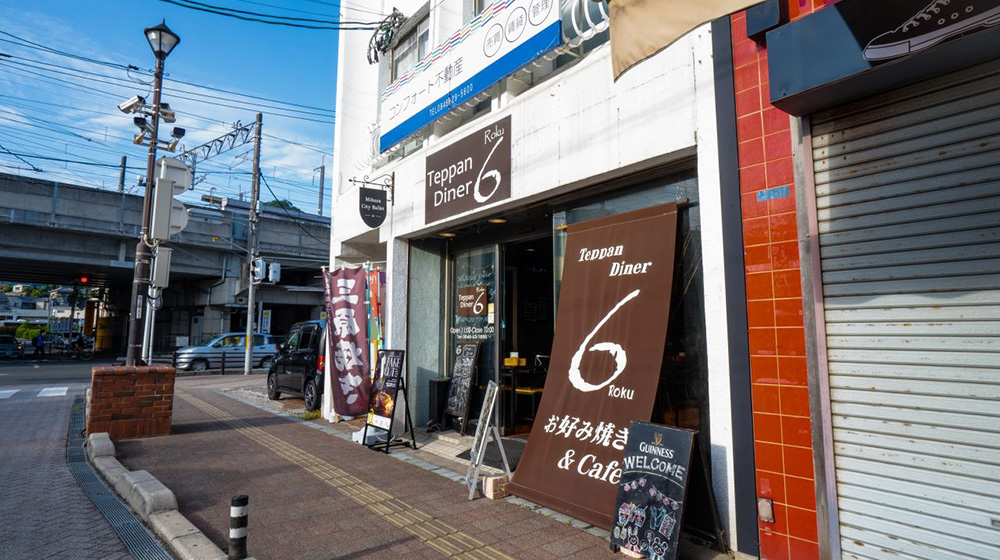 外観はオシャレなアイリッシュパブのような雰囲気のこちらのお店が「Teppan Diner 6(ロク)」です。お店の中には外国製のビールがずらりと並び、とりあえずギネスでも注文したくなります。