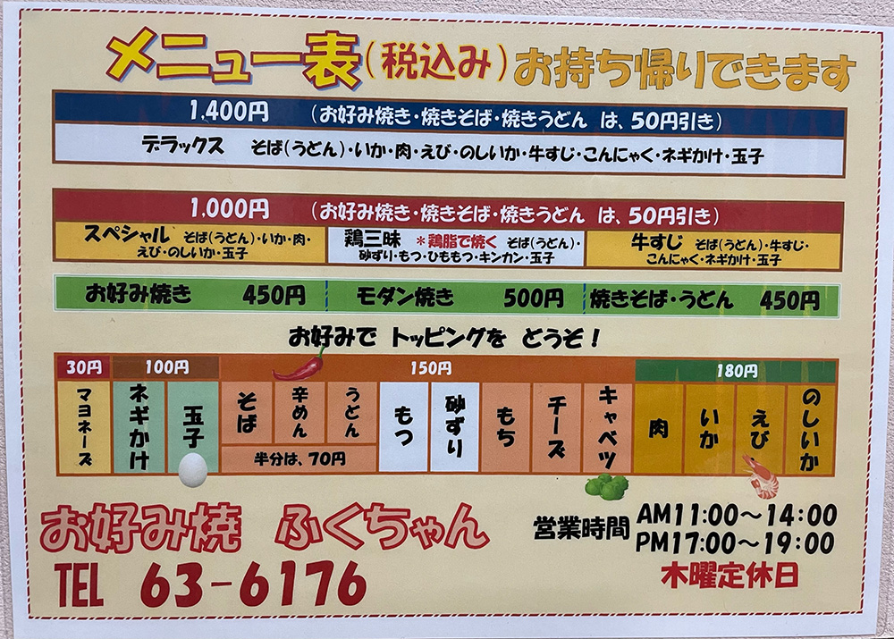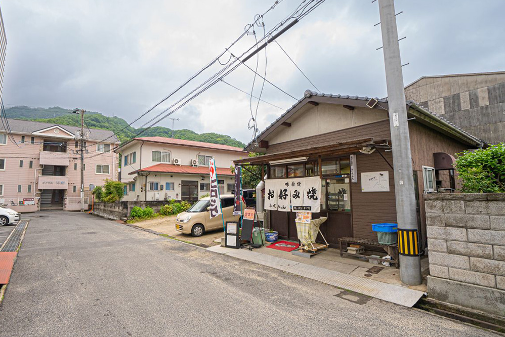 昭和54年、大工である店主の旦那さんが、仕事の合間に建ててくれた「ふくちゃん」は創業40年。昔ながらの町のお好み焼屋の雰囲気が色濃く残る、なんとも懐かしい店構え。