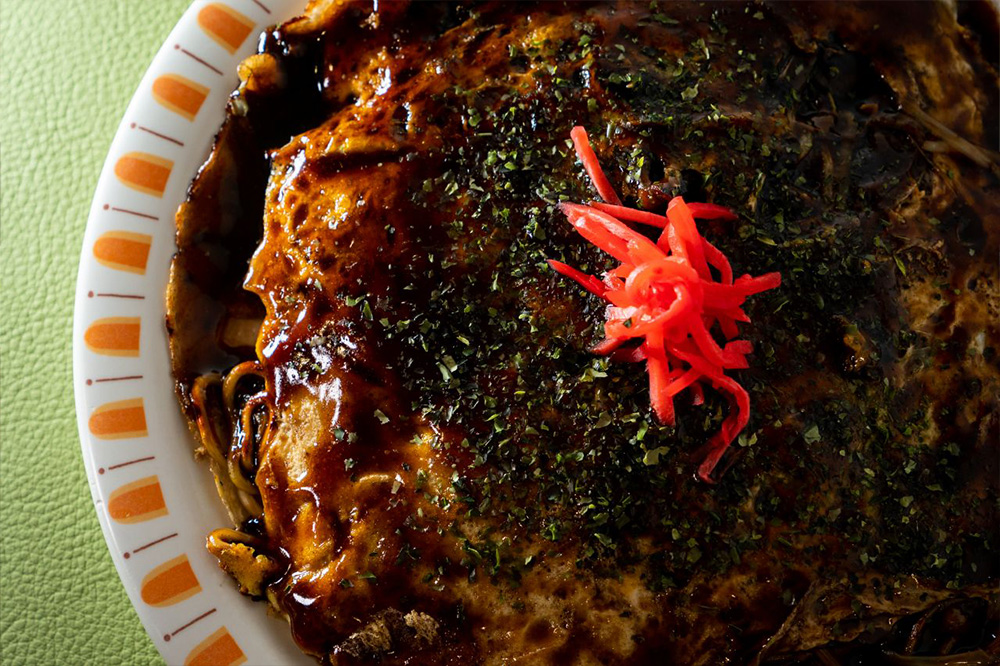 その調理風景は、素早く丁寧で、美味しそうに焼き上がるお好み焼は見ていて飽きません。