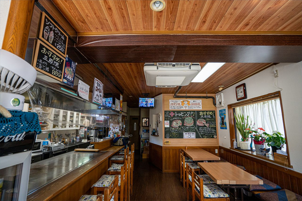 三原運動公園からほど近い場所のこちらのお店は、みんなに愛されるように、お客さんが自分の家のようにいつでも帰って来たくなるようにと「ムーミンハウス(たのしい家)」と名付けたそうです。