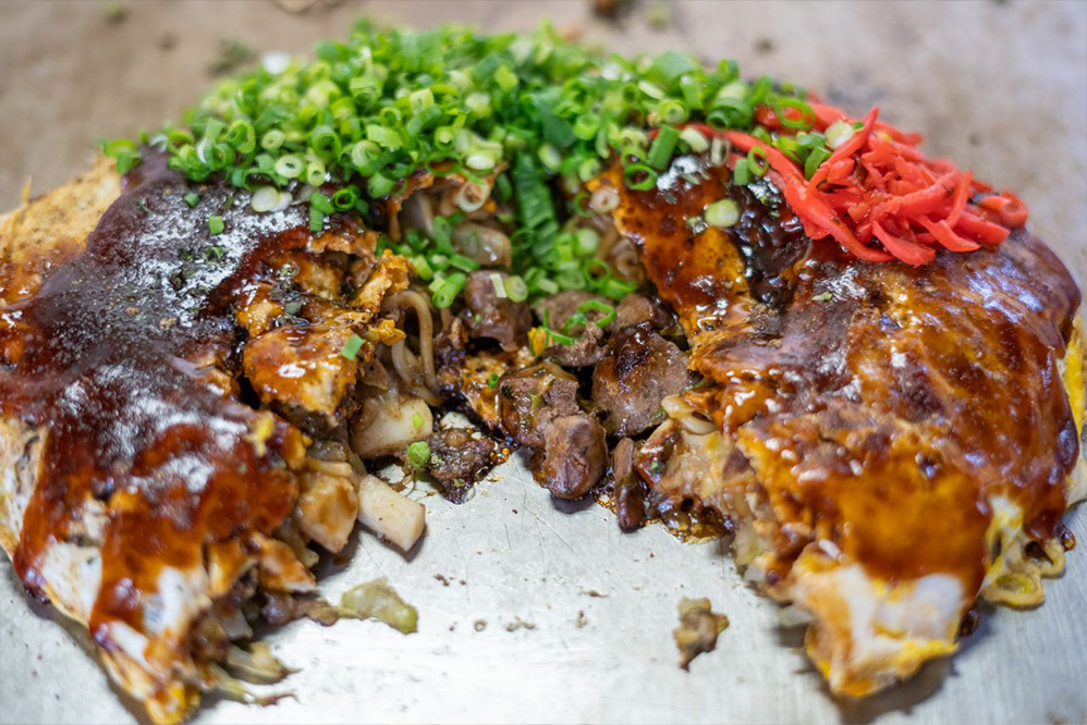 こちらの三原焼き(¥850)にはイカが入ります!イカの旨みと食感が鳥もつと合うんですよ~!いつも完売するらしいです!