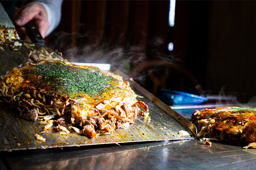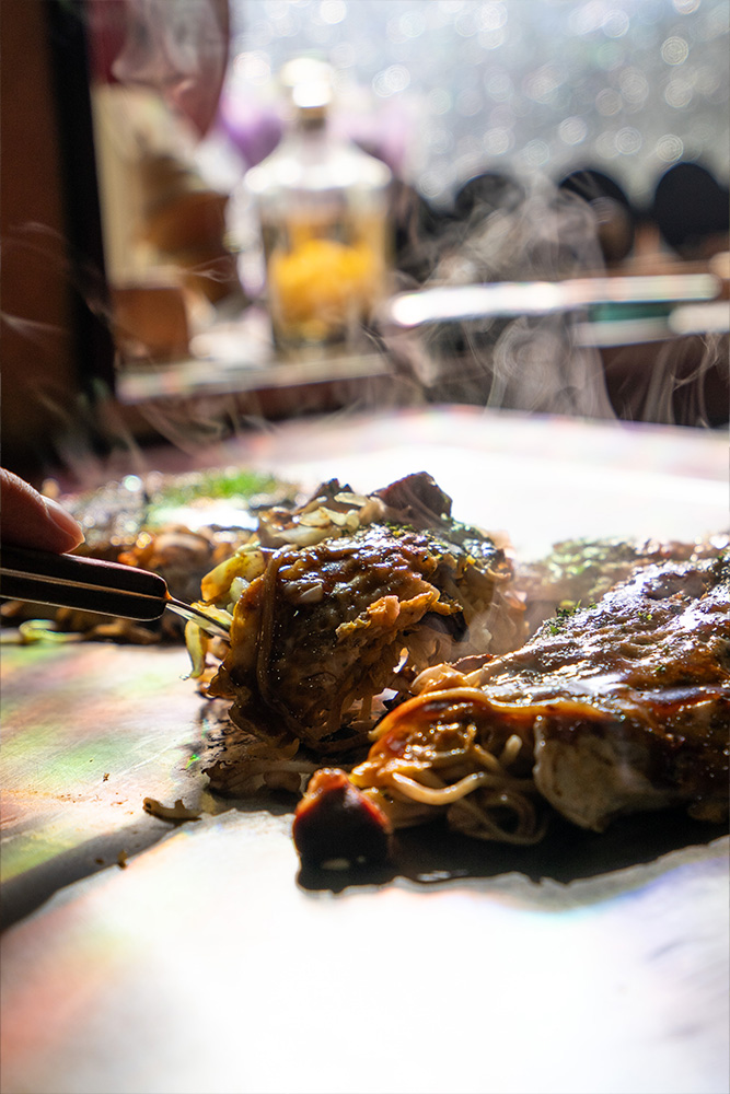 そんなとおんきごうの三原焼きの特徴はきのこが入っていること。鳥もつはレバーと砂ずりのミックスで、きのこの食感と香りが鳥もつと相性が良く新しい発見です。